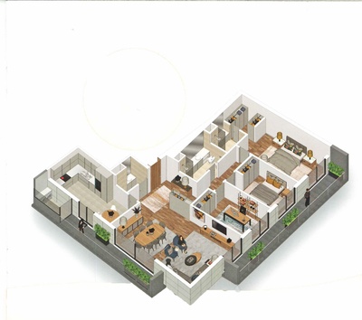 Nº de frentes: 3, Nº de pisos: 4